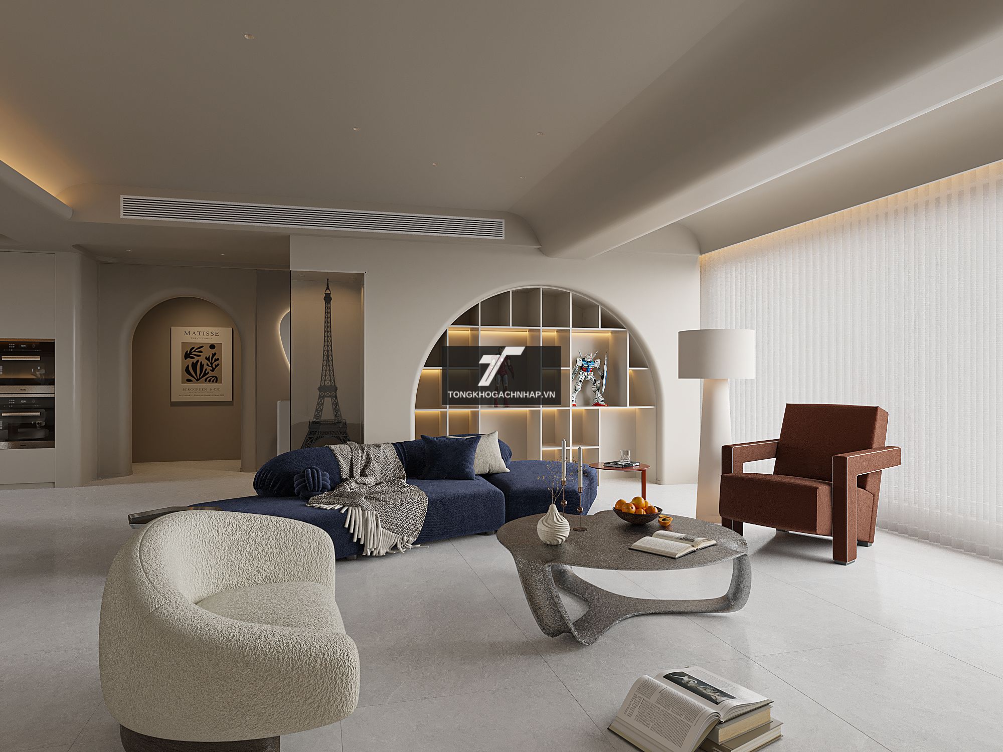 Không gian liền mạch: Gạch khổ lớn 80x80 giúp mở rộng diện tích thị giác, mang lại cảm giác thoáng đãng hơn.