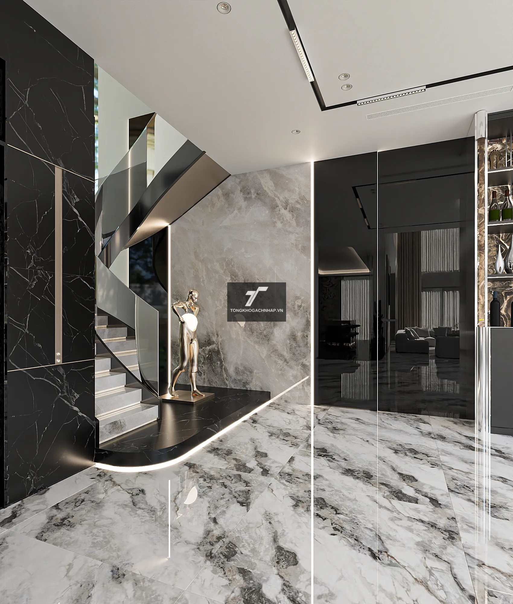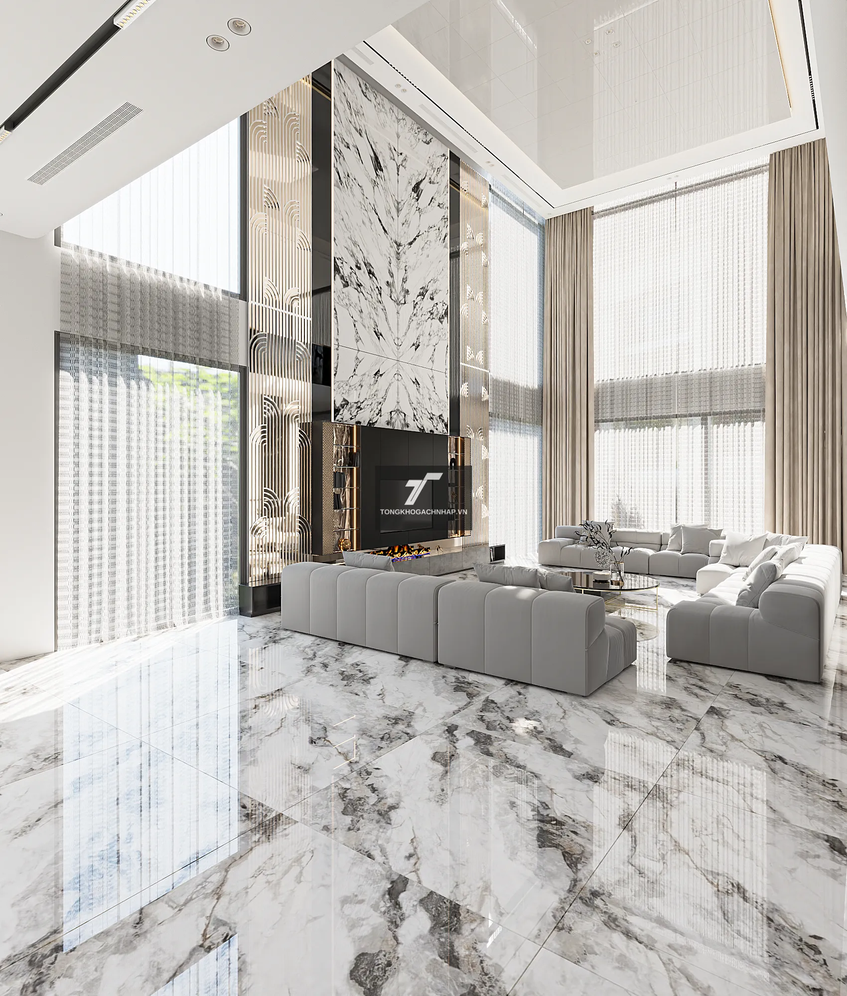 Việc sử dụng gạch kích thước 1000x1000mm giúp giảm thiểu tối đa các đường mạch gạch trên bề mặt gạch lát sàn. Điều này không chỉ giúp việc vệ sinh trở nên dễ dàng hơn mà còn tạo ra một không gian mở, liền mạch và thông thoáng. Đối với các căn biệt thự hay căn hộ có diện tích lớn, khổ gạch 1 mét chính là giải pháp hoàn hảo để khẳng định tầm vóc và giá trị của công trình.