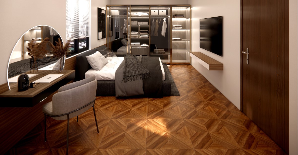 Sự kết hợp giữa vẻ đẹp tự nhiên của gạch vân gỗ và không gian phòng ngủ tạo nên không gian thuận tiện cho giấc ngủ và thư giãn. Với sự đa dạng về màu sắc và kiểu dáng, gạch giả gỗ 60x60cm mang đến phòng ngủ vẻ đẹp tinh tế và sang trọng.