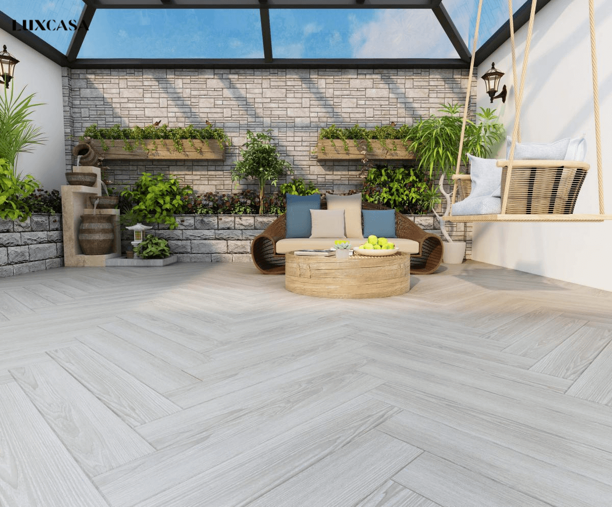 Gạch giả gỗ xám trắng dùng lát nền, sàn