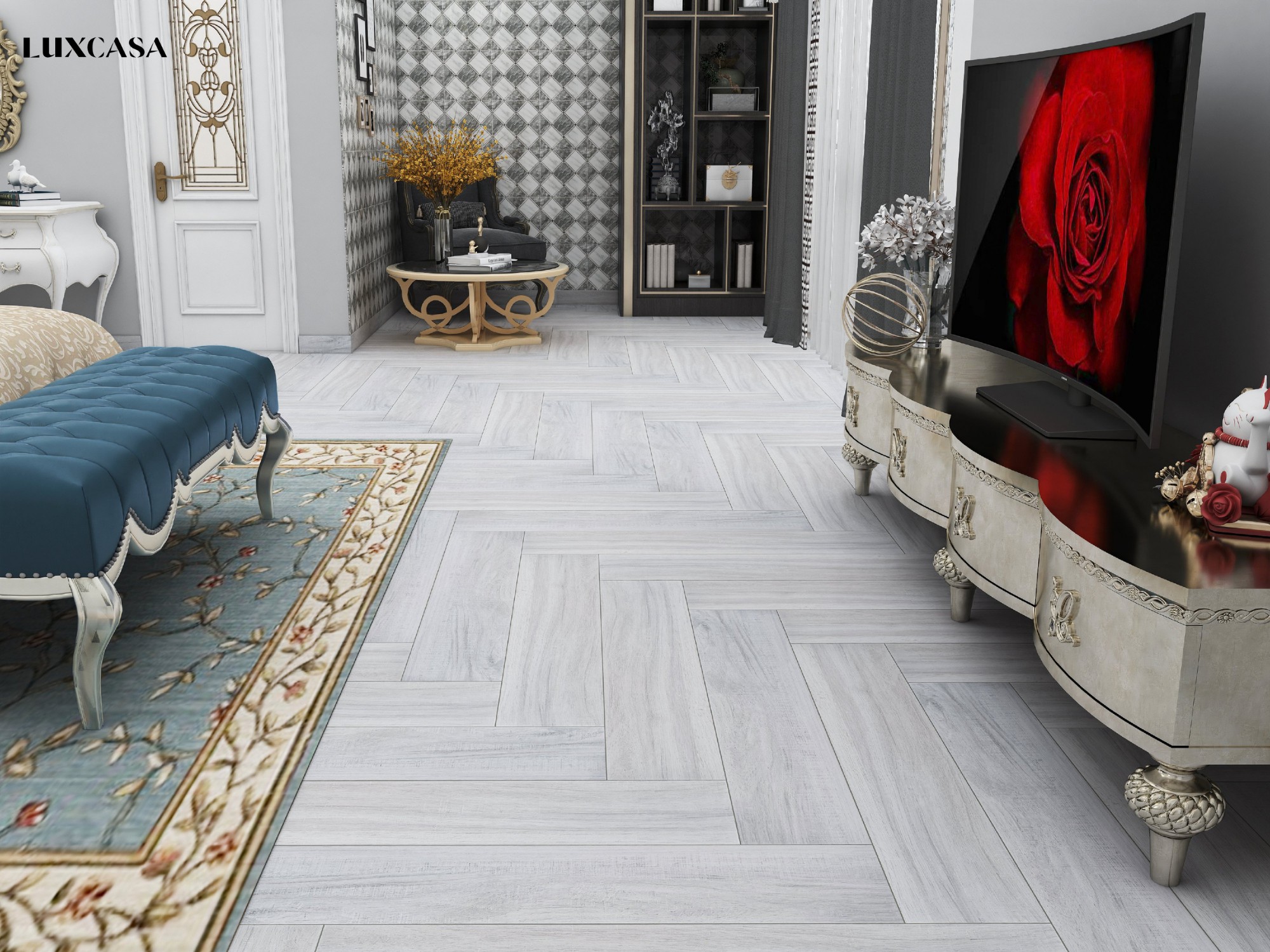 Gạch giả gỗ xám trắng là tông màu được mọi người tìm kiếm rất nhiều hiện nay, vì nó mang lại cho không gian một nét hoài cổ gì đó khác hẳn vởi màu nâu gỗ tự nhiên hay thấy trên thị trường, làm cho ngôi nhà gia chủ chở nên khác lạ hơn so với các ngôi nhà truyền thống. Tông màu xám trắng là một trong nhưng sự lựu chọ bạn không thể bỏ qua khi bạn muốn thiết kế một ngôi nhà mang phong cách hiện đại hay kiểu hiện đại pha chút tối giản. Tông màu này còn rất hợp phong thủy với các mệnh thủy hay mệnh kim, giúp đem tài lộc vận khí may mắn đến cho gia chủ.