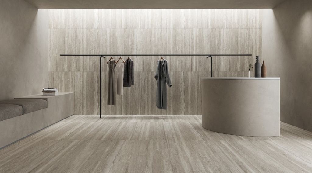 Gạch giả đá travertine màu kem nhạt 600×1200 612LUTV1