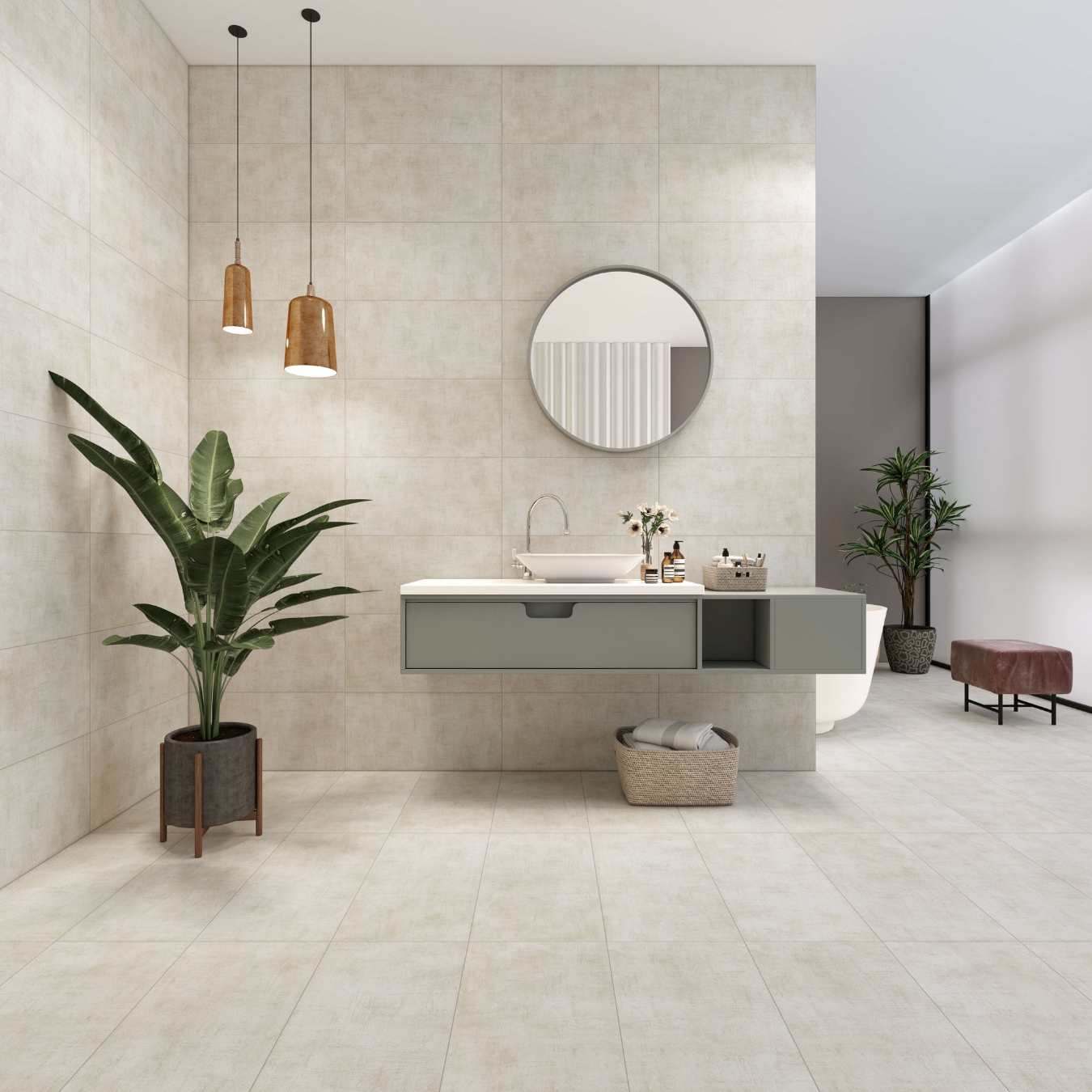 Gạch Lát Nền Nhà Tắm Chống Trơn Màu Vàng Đất Chống Thấm Nước: Gạch Porcelain có độ hút nước cực thấp, ngăn ngừa ẩm mốc, ố màu, duy trì vệ sinh và vẻ đẹp lâu dài cho khu vực ẩm ướt.