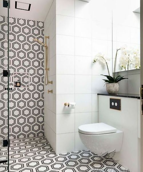 Gần đây, việc kết hợp, đan xen các loại gạch nhiều họa tiết khác nhau vào một nhà tắm đang là xu hướng trong trang trí nội thất. Bạn có thể chọn một vài viên gạch đặc biệt để lát nền tạo điểm nhấn cho căn phòng. Việc này cũng giúp tích kiệm chi phí vì không cần dùng tất cả mẫu gạch đắt đỏ cho nền nhà thay vào ta chỉ cần một ít để làm nổi bật căn phòng.