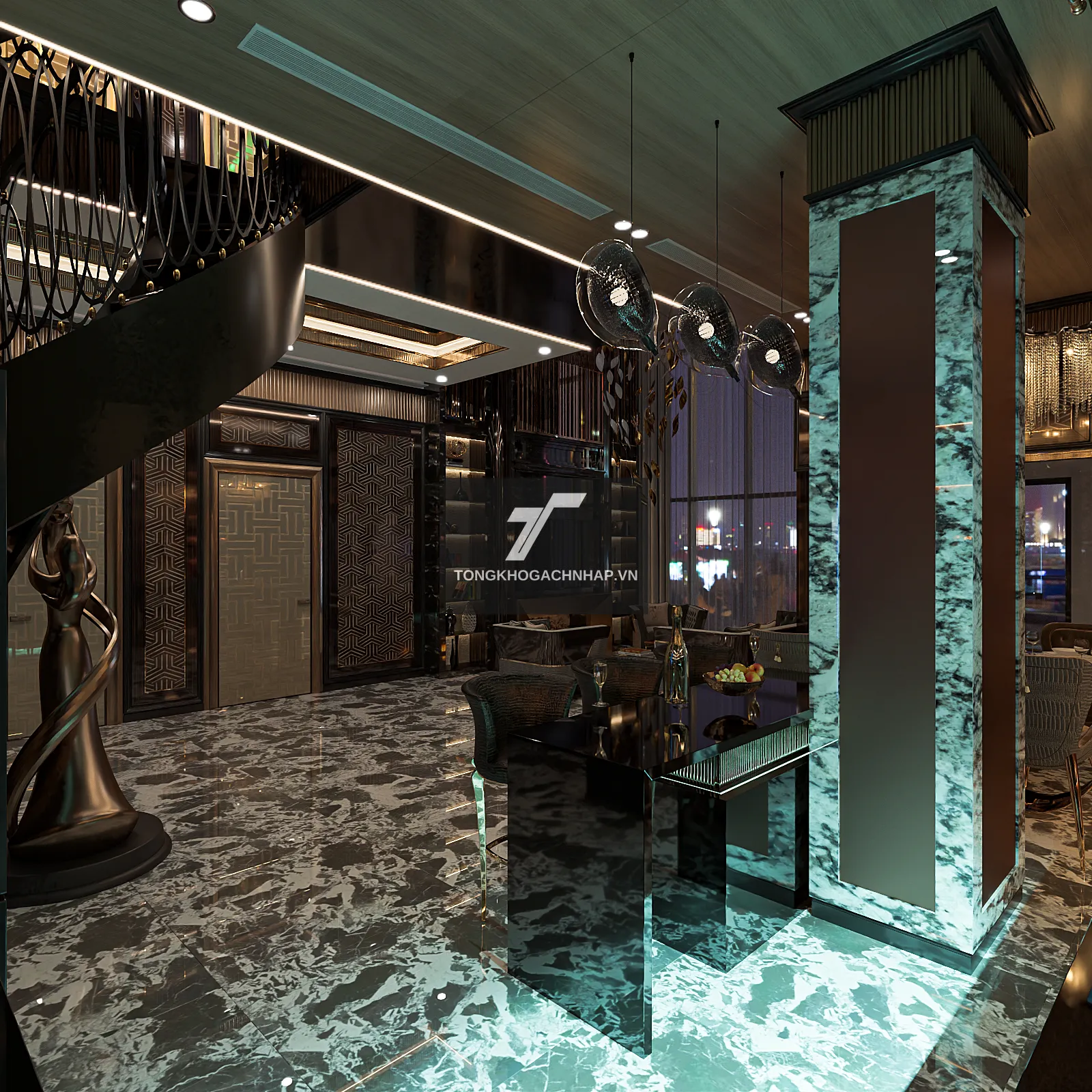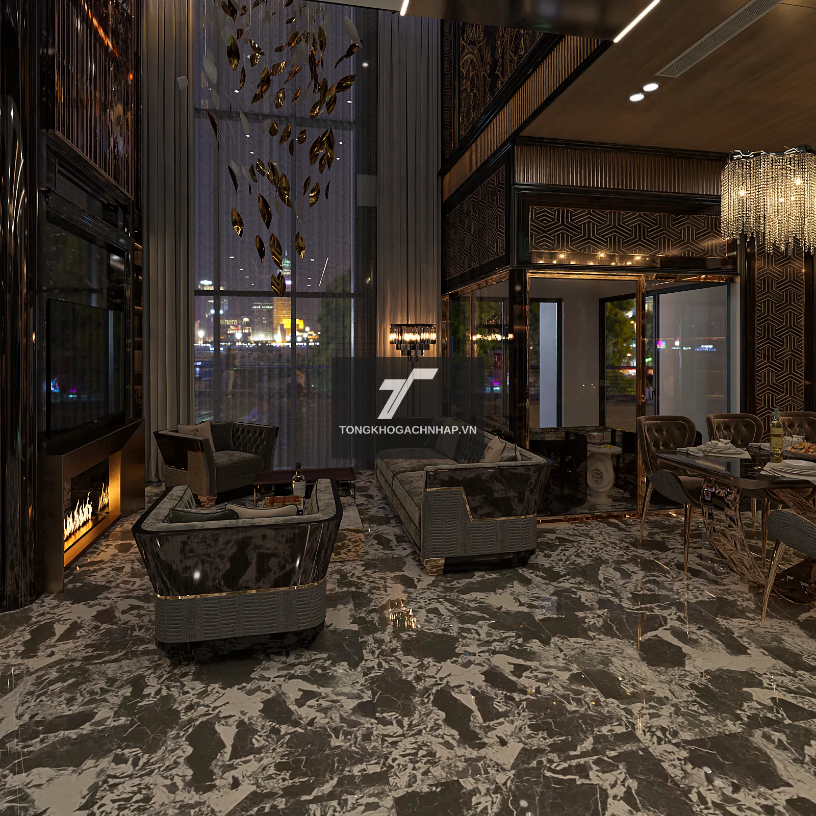Ngoài phòng khách, dòng gạch này còn được ứng dụng rộng rãi tại các sảnh khách sạn, showroom thời trang hay các căn hộ penthouse. Sự kết hợp giữa tông đen sang trọng và kích thước khổ lớn 1000x1000mm chắc chắn sẽ để lại ấn tượng mạnh mẽ cho bất kỳ ai ngay từ cái nhìn đầu tiên.