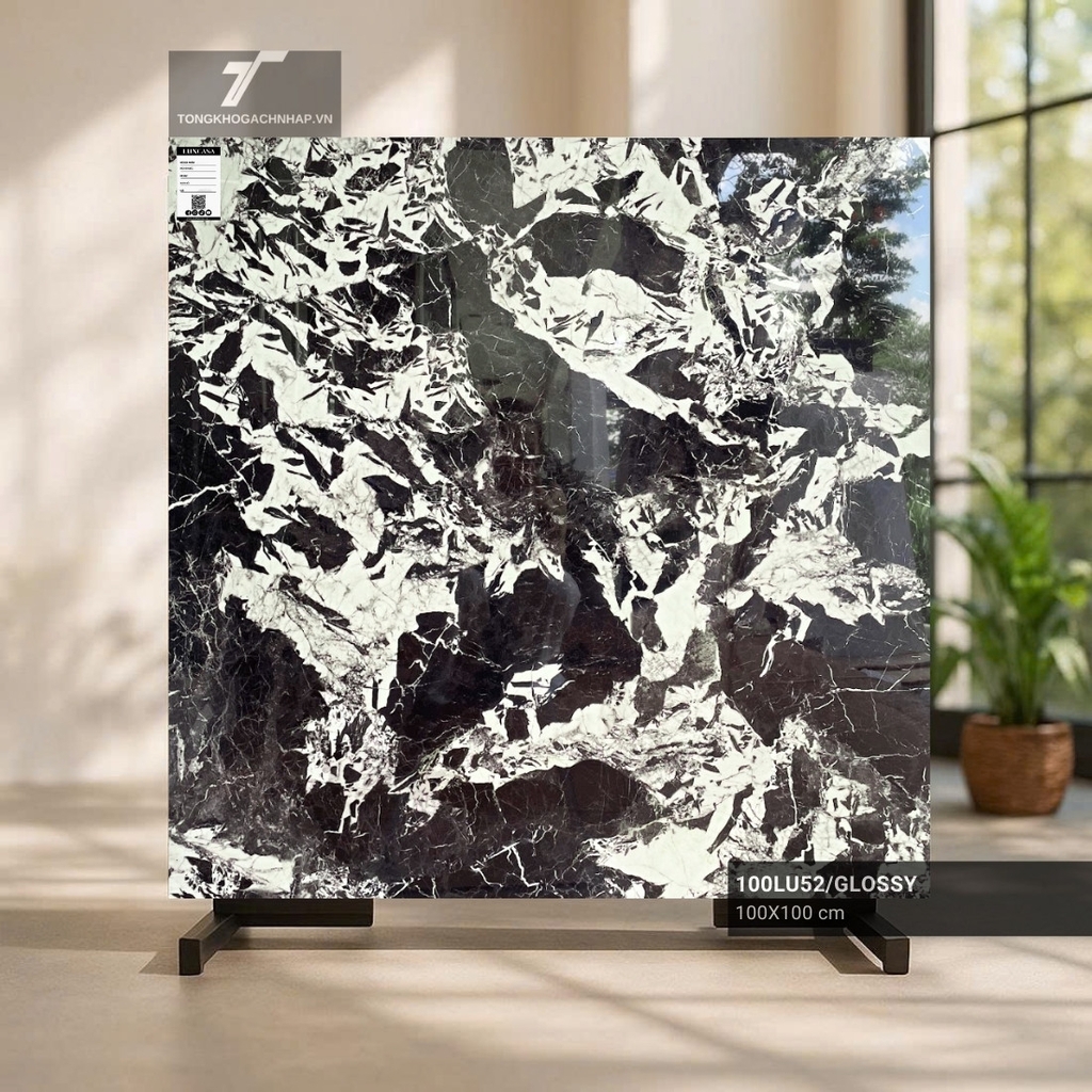 Trong thiết kế nội thất hiện đại, màu đen không còn là biểu tượng của sự u tối mà đã trở thành ngôn ngữ của sự quyền lực và đẳng cấp. Mẫu gạch màu đen 1000x1000 mã 100LU52 chính là minh chứng rõ nét nhất cho xu hướng này, mang đến một diện mạo hoàn toàn mới cho không gian sống của bạn.