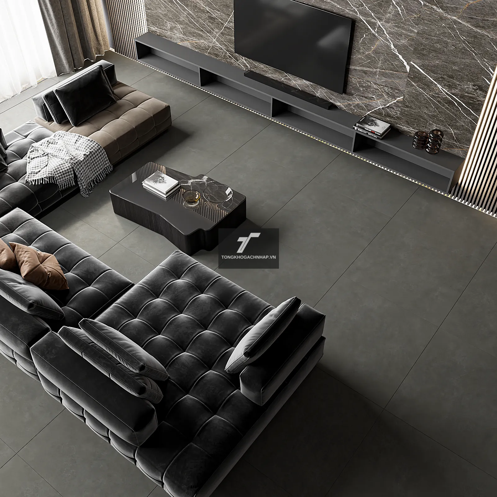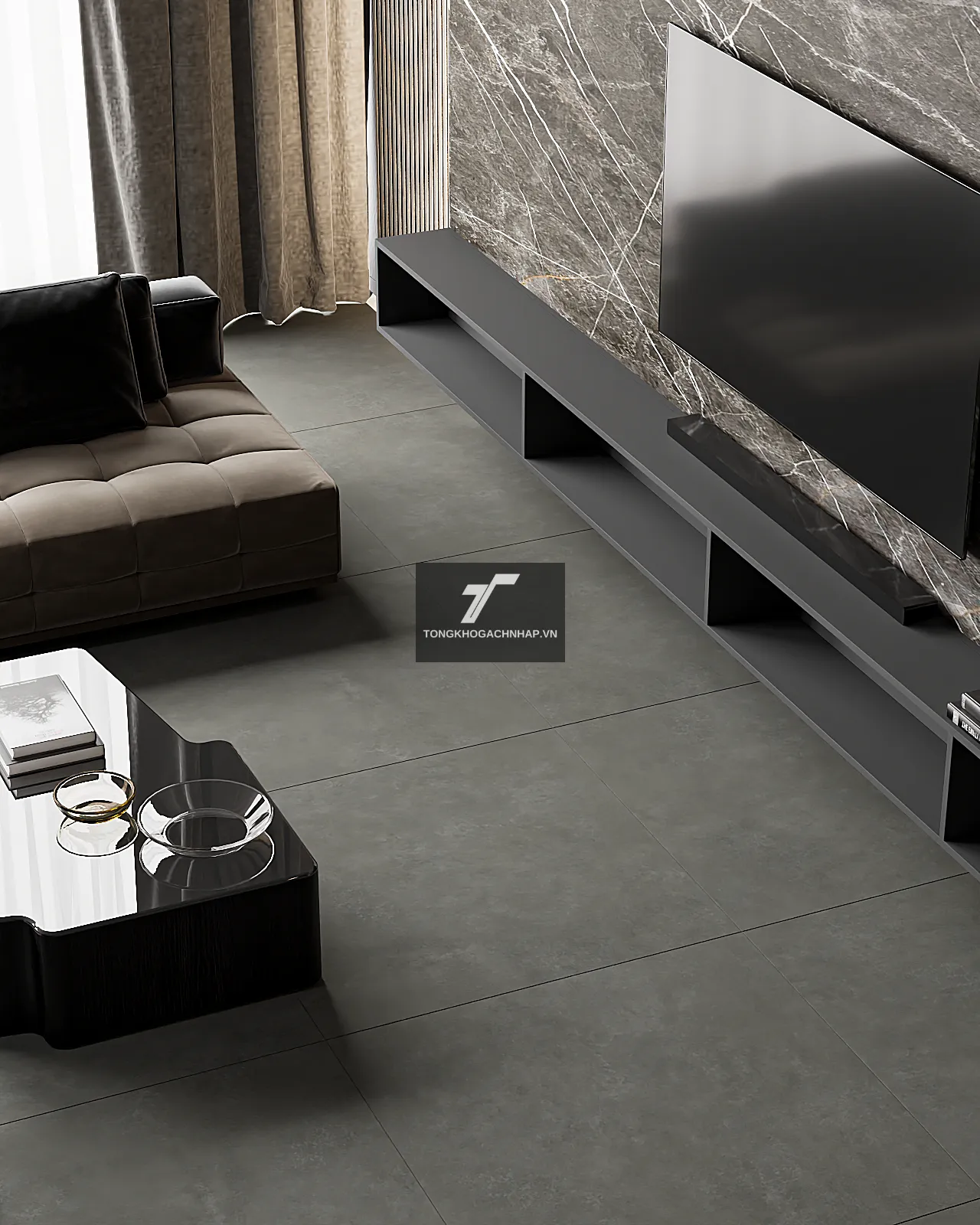 Sử dụng gạch 1000x1000 màu xám mã 100LU7501 mang lại cảm giác bình yên nhưng cực kỳ thời thượng. Màu xám không chỉ giúp che đi những vết bẩn nhỏ một cách tài tình mà còn là lớp nền hoàn hảo để làm nổi bật bất kỳ món đồ nội thất nào, từ sofa vải thô, bàn gỗ tự nhiên cho đến những chi tiết kim loại đen mờ.