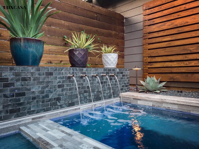 Những viên gạch thẻ màu xám, đen, bóng làm nổi bật hồ nước của bạn, tạo nên một không gian độc đáo và sang trọng.