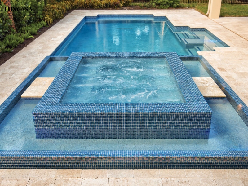 Tính thẩm mỹ của gạch mosaic cực cao, với đa dạng màu sắc và họa tiết, giúp tạo ra những mẫu trang trí bể bơi độc đáo và ấn tượng. Không chỉ làm tăng giá trị thẩm mỹ của bể bơi, gạch mosaic còn giúp tạo ra một môi trường sống vui tươi, năng động và đầy sáng tạo cho các hoạt động bơi lội. Hơn nữa, gạch mosaic còn có khả năng kháng khuẩn, giúp bể bơi được bảo vệ khỏi các vi khuẩn gây hại cho sức khỏe của người sử dụng.