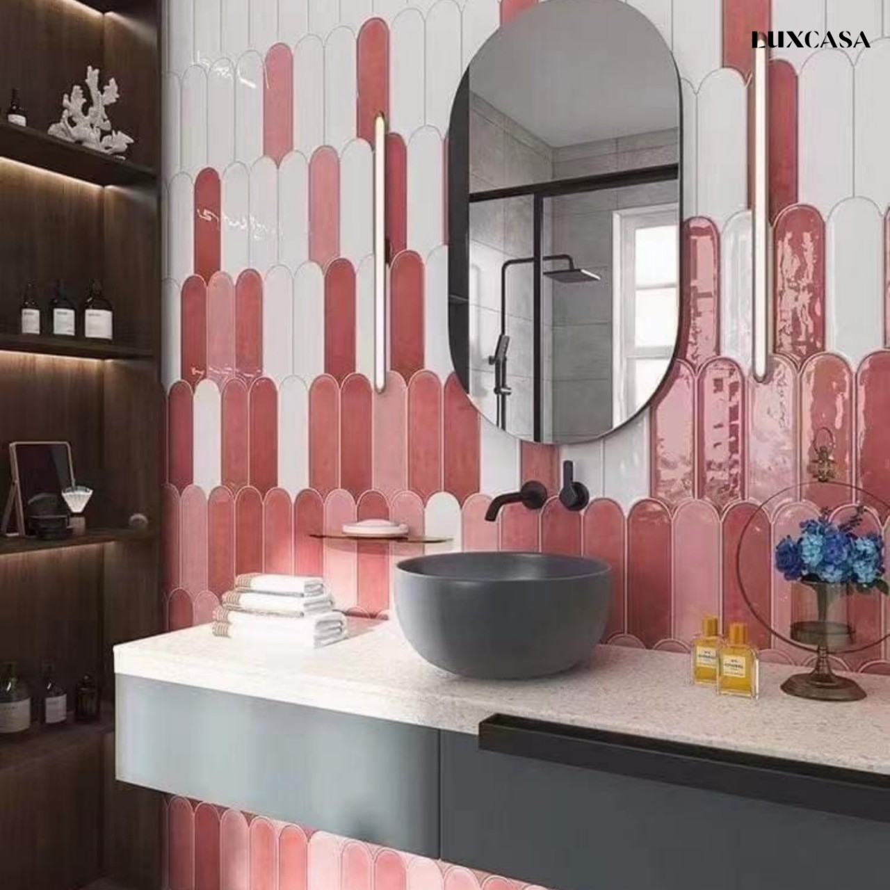 Như vậy, với màu sắc tinh tế và hình dáng độc đáo, gạch mosaic màu hồng nhạt LUAYYM90300-14 là lựa chọn hoàn hảo cho các không gian như nhà tắm, quán cafe hay nhà hàng.
