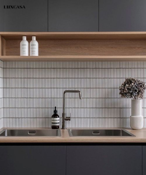 Mẫu gạch thẻ màu trắng ốp bếp đang là xu hướng năm 202