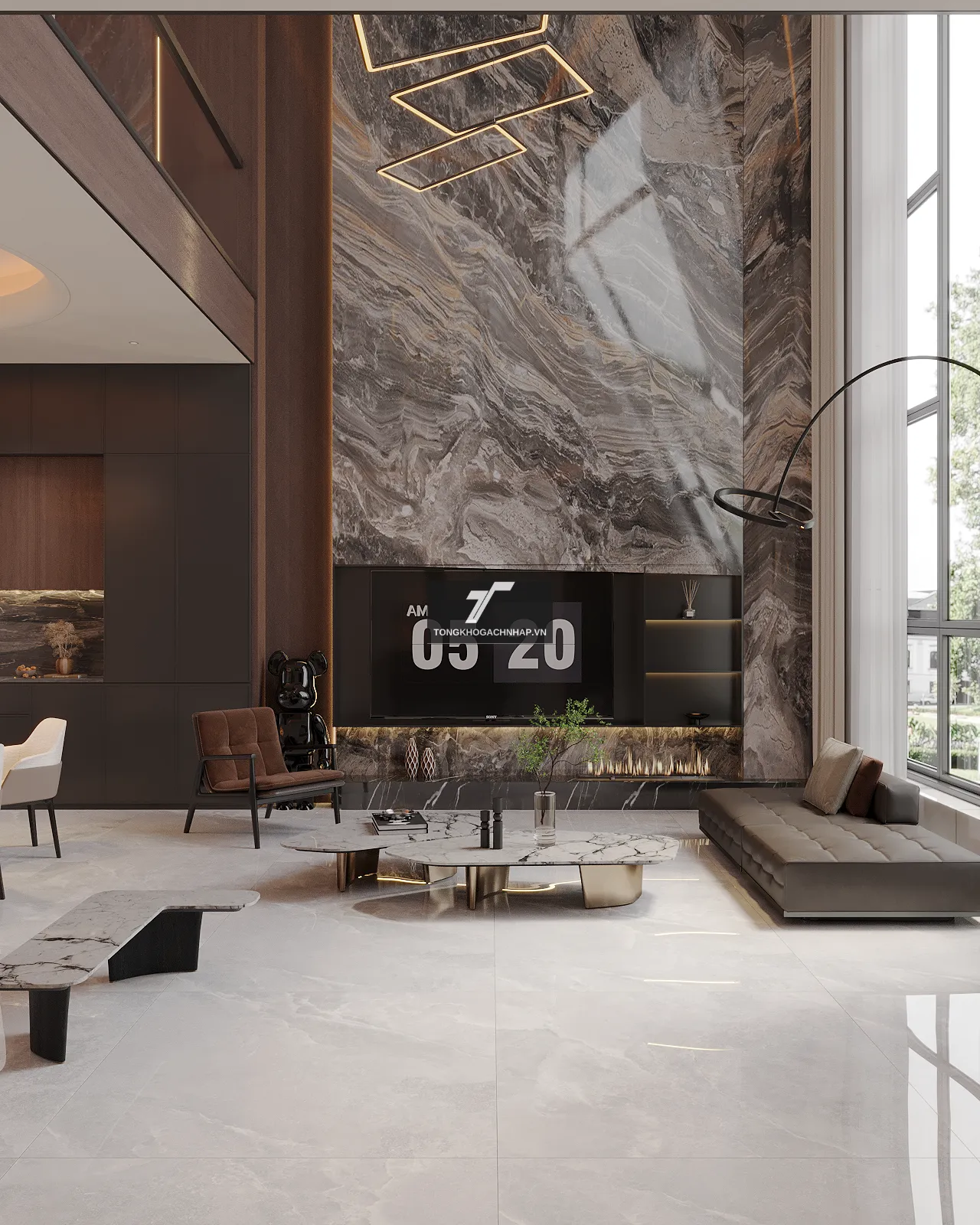 Bên cạnh yếu tố thẩm mỹ, kích thước 120x120cm còn mang lại lợi ích thiết thực trong việc vệ sinh. Những đường ron gạch thường là nơi tích tụ bụi bẩn và khó làm sạch nhất; do đó, khi sử dụng gạch khổ lớn, công việc dọn dẹp của bạn sẽ trở nên nhẹ nhàng hơn rất nhiều. Đối với các không gian có diện tích lớn như biệt thự, penthouse hay sảnh thương mại, dòng gạch khổ lớn này chính là chìa khóa để khẳng định đẳng cấp và sự bề thế của công trình.