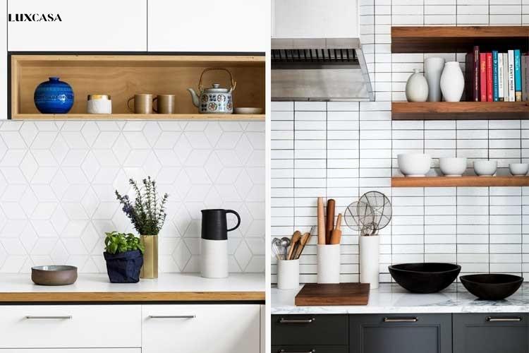 Loại gạch thẻ ốp tường bếp màu trắng không bao giờ bị lối mốt