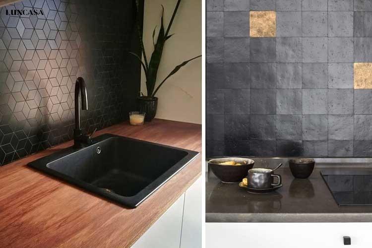 Màu đen mang tới vẻ đẹp huyền bí, cao cấp và trong những ngôi nhà xây dựng gần đây gạch màu đen rất được mọi người sử dụng tạo điểm nhấn cho một không gian nào đó, đặc biệt là bức tường bếp.