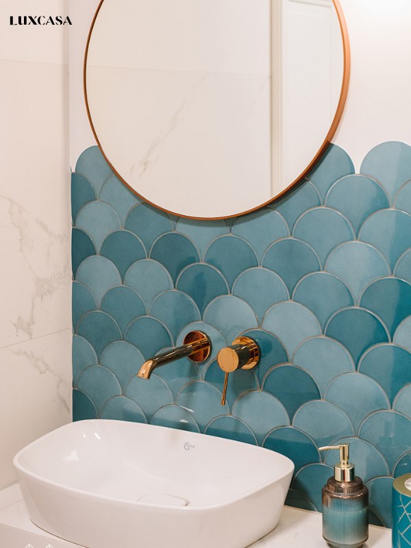 Những mệnh Kim, Hỏa nên tránh việc lựa chọn tông màu xanh ngọc làm tông màu chủ đạo cho ngôi nhà, vì nó không phù hợp với phong thủy. Tuy nhiên, bạn vẫn có thể sử dụng gạch màu xanh để ốp tường tạo điểm nhấn trang trí.
