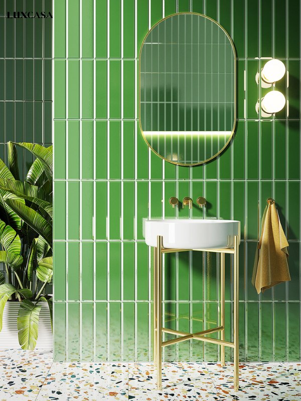 Gạch ốp tường màu xanh ngọc đẹp mang đến cảm giác tươi mới, gần gũi với thiên nhiên nhưng vẫn giữ được sự sang trọng và tinh tế. Bộ sưu tập mới nhất 2025 giúp không gian trở nên nổi bật, hiện đại và đầy sức sống.