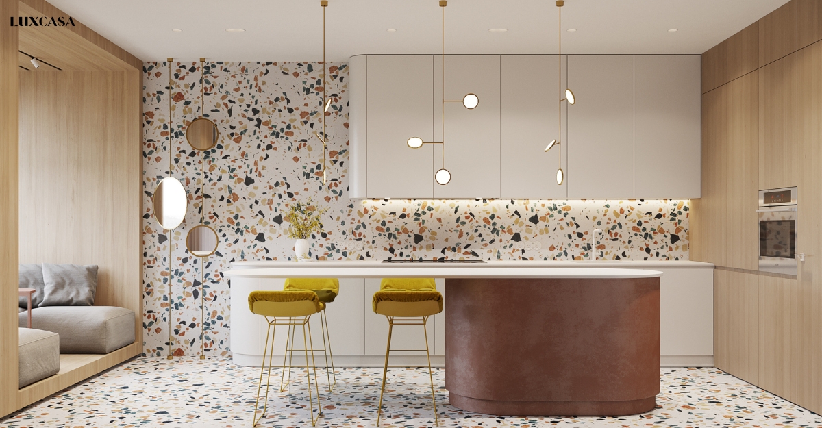 Hoa văn trên bề mặt gạch Terrazzo cũng là một điểm nhấn quan trọng, tạo nên vẻ độc đáo và cuốn hút. Từ những hoa văn truyền thống đến những thiết kế hiện đại và trừu tượng, gạch Terrazzo là bảng tranh sáng tạo cho người thiết kế, giúp tạo nên không gian mua sắm với vẻ đẹp thẩm mỹ và nghệ thuật tinh tế. Hãy tham khảo thêm về bài viết 3 Xu Hướng Gạch Lát Phòng Tắm Sẽ Tạo Nên Cơn Bão Vào Năm 2024 để bắt kịp xu hướng ốp lót 2024 nhé!