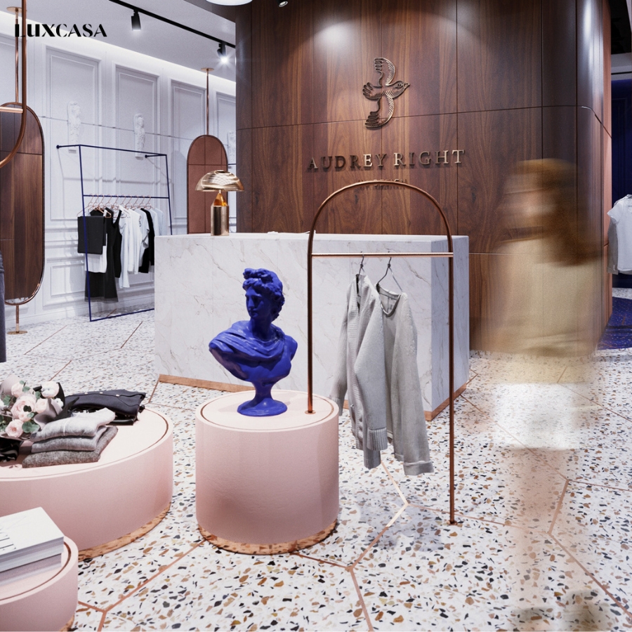 Sự tối giản của terrazzo không chỉ là một phong cách trang trí, mà còn là sự tương thích với tinh thần hiện đại của ngành thời trang. Sự hòa quyện giữa sự sang trọng và tối giản trong terrazzo giúp tạo nên không gian shop thời trang thú vị và cuốn hút.