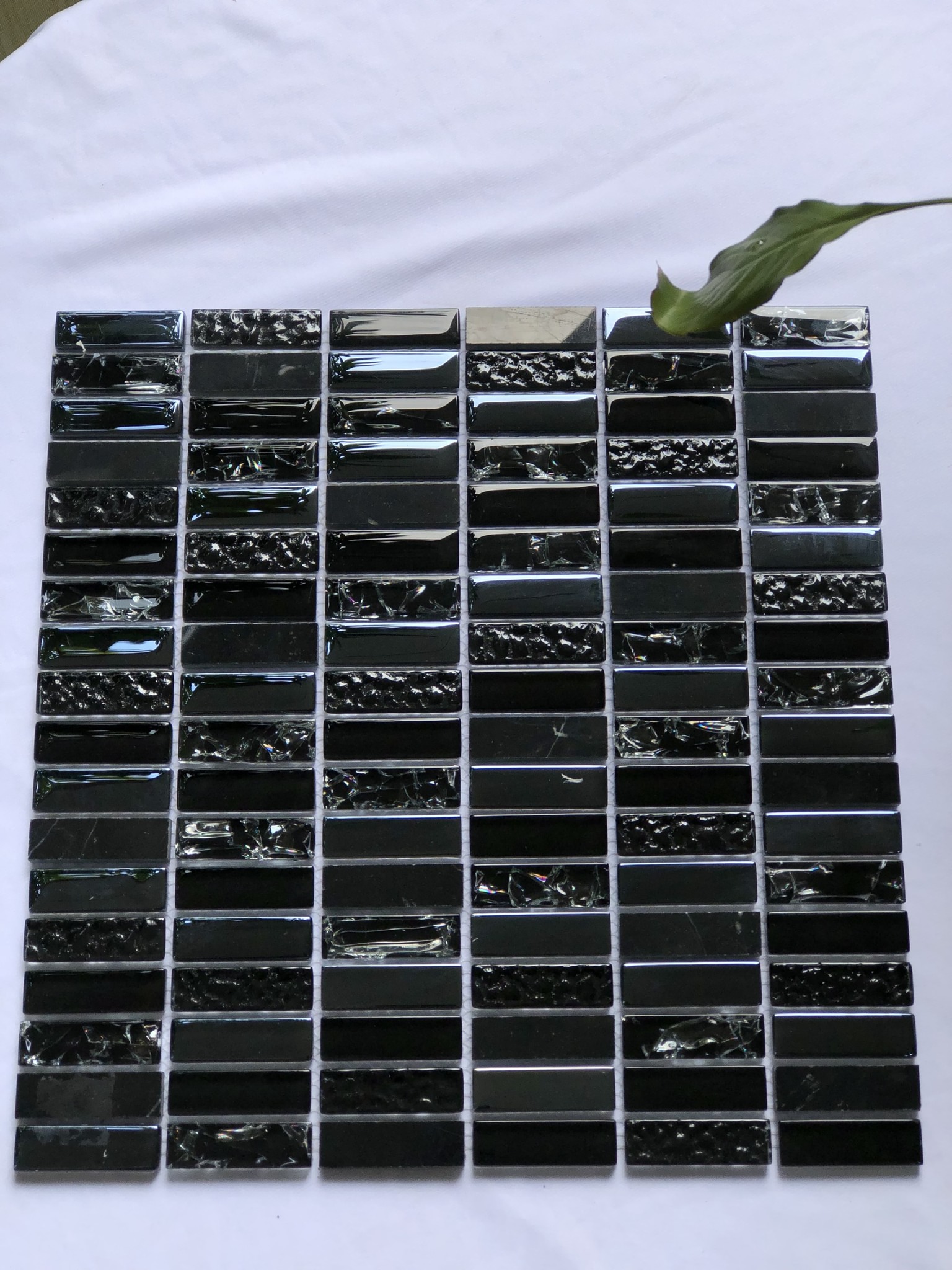 Dòng gạch mosaic FF-6017 là một sản phẩm đặc biệt với màu sắc chủ đạo là đen. Điểm nổi bật của dòng gạch này là bề mặt được làm bóng kính, giúp cho sản phẩm trông sang trọng và đẳng cấp. Gạch mosaic FF-6017 được ghép từ các viên nhỏ có kích thước 15x60mm, với mỗi viên nhỏ đều có bề mặt khác nhau. Các viên nhỏ này được làm từ chất liệu kính, thủy tinh chất lượng cao, giúp cho sản phẩm đạt được độ bền cao và độ bóng đẹp.