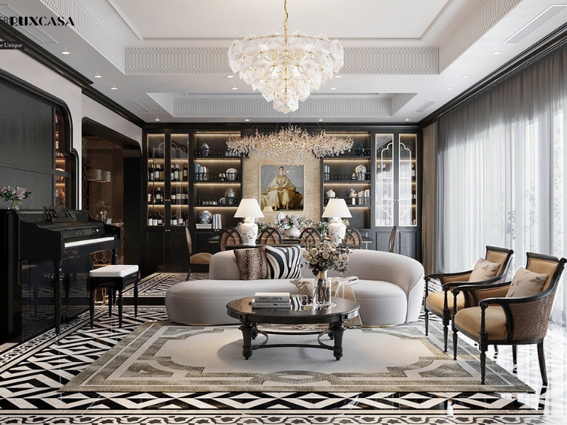 8. Xu hướng gạch lát phòng khách theo phong cách tân cổ điển